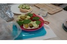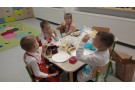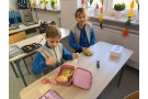 Przestrzeganie zasad prawidłowego odżywiania jest ważne w każdym okresie życia człowieka. Szczególnie powinni na to zwracać uwagę osoby, których organizm rośnie i rozwija się oraz intensywnie pracuje. Dlatego też 5 i 8 listopada uczniowie z klasy „0”, Ib i II mieli okazję zmienić się w małych kucharzy i dietetyków. Przeprowadziliśmy wyjątkowe warsztaty, które nie tylko były doskonałą zabawą, ale też lekcją na temat zdrowych nawyków żywieniowych. Dzieci wykonały kanapki z pełnoziarnistego pieczywa i zdrowych dodatków. Na talerzach pojawiły się kolorowe kanapki z humusem, twarożkiem, wędliną oraz dużą ilością świeżych warzyw- sałatą, pomidorem, ogórkiem, papryką i rzodkiewką. Każdy miał możliwość stworzenia własnej kompozycji smakowej, przez co potrawy były nie tylko zdrowe, ale także wyjątkowo apetyczne. Uczniowie z klasy II przygotowali sok ze świeżo wyciśniętych owoców, a dzieci z zerówki miksowały ulubione owoce, by skosztować pysznego koktajlu.